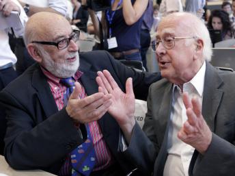 Đó là giáo sư François Englert (81 tuổi) và giáo sư Peter Higgs (84 tuổi). Sau gần nửa thế kỷ kiêng, vào năm 2011, các nhà khoa học trên thế giới đã được chứng kiến những ban bố tìm thấy hạt Higgs, hay một loại hạt được coi là giống với hạt Higgs.